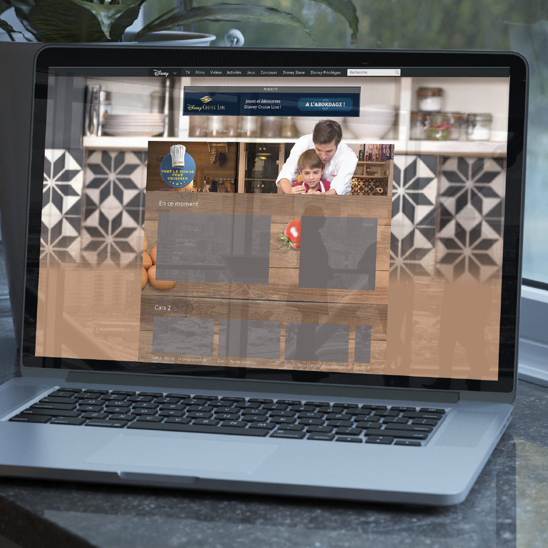 Des habillages pour les Home Pages des différents sites regroupés sur Disney.fr afin de mettre en avant des sorties de films, de séries, d'actions et de concours.